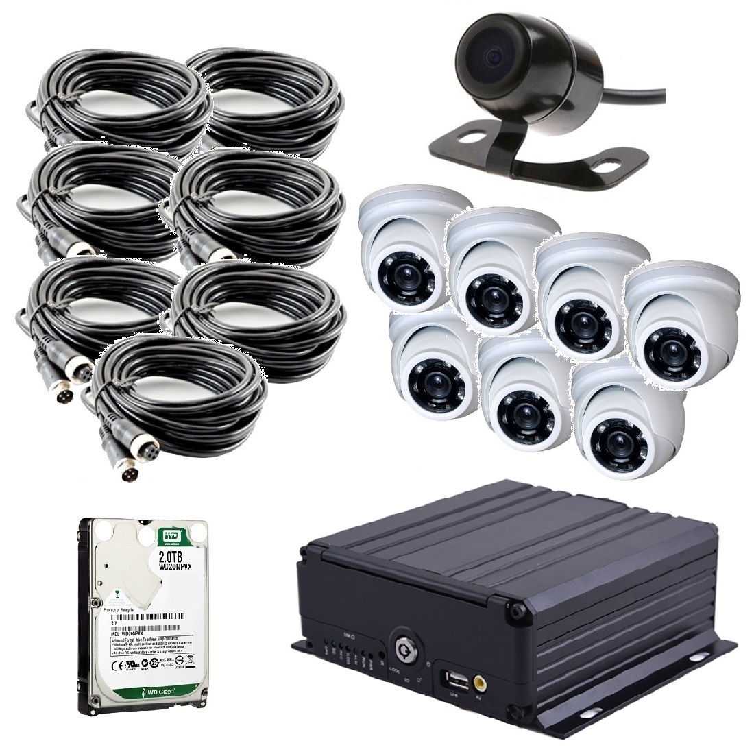 Комплект видеонаблюдения на транспорт с 1 SD картой на 7 камер